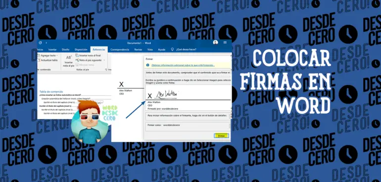¿Cómo personalizar un documento de texto en la aplicación ofimática Microsoft Word añadiendo la firma manuscrita o mecanografiada de un usuario?